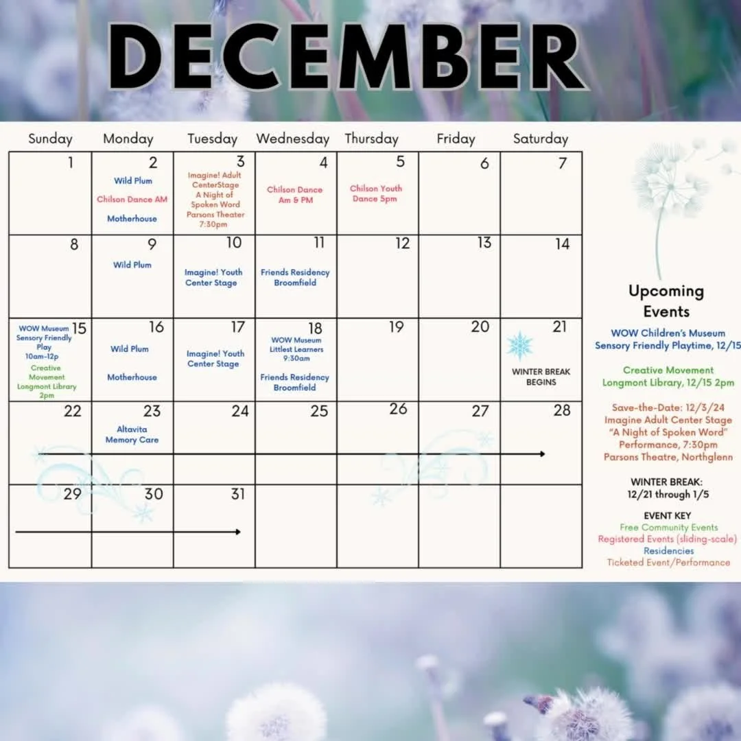 Throughout history and in many cultures, dandelions have long been a symbol of hope, resilience, nourishment, growth, and healing. Through music, movement, creative expression, storytelling, visual art, and more, Dandelion Arts Collective aims to bring those same elements to communities across the North Denver Metro area.